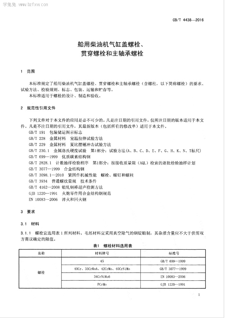 CB/T 4438-2016 船用柴油机气缸盖螺栓、贯穿螺栓和主轴承螺栓