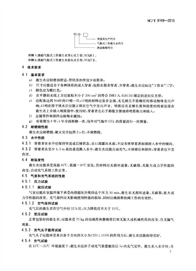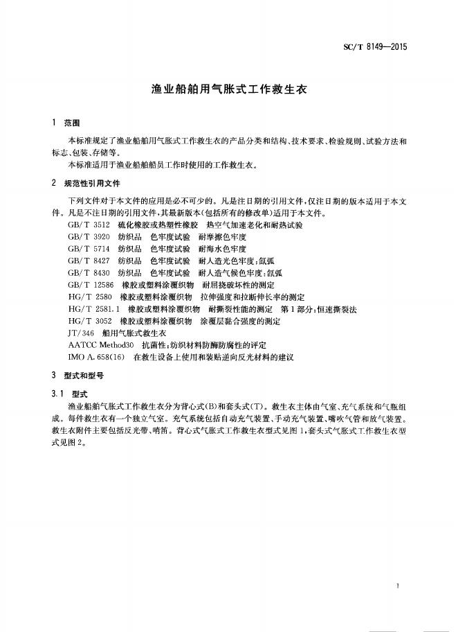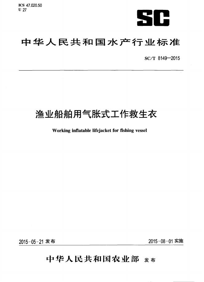 SC/T 8149-2015 渔业船舶用气胀式工作救生衣