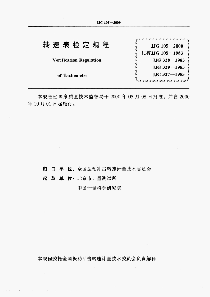 - 代替标准:JJG 105-1983、JJG 328-1983、JJG 329-1983、JJG 327-1983