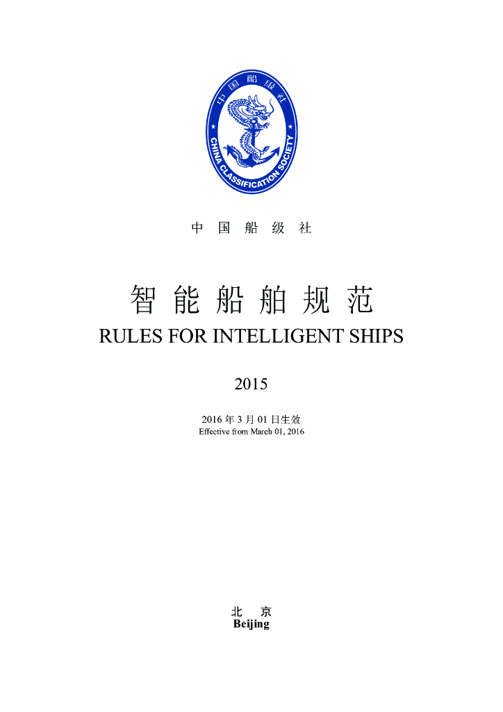 中国船级社CCS:智能船舶规范 2015