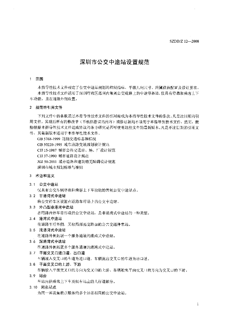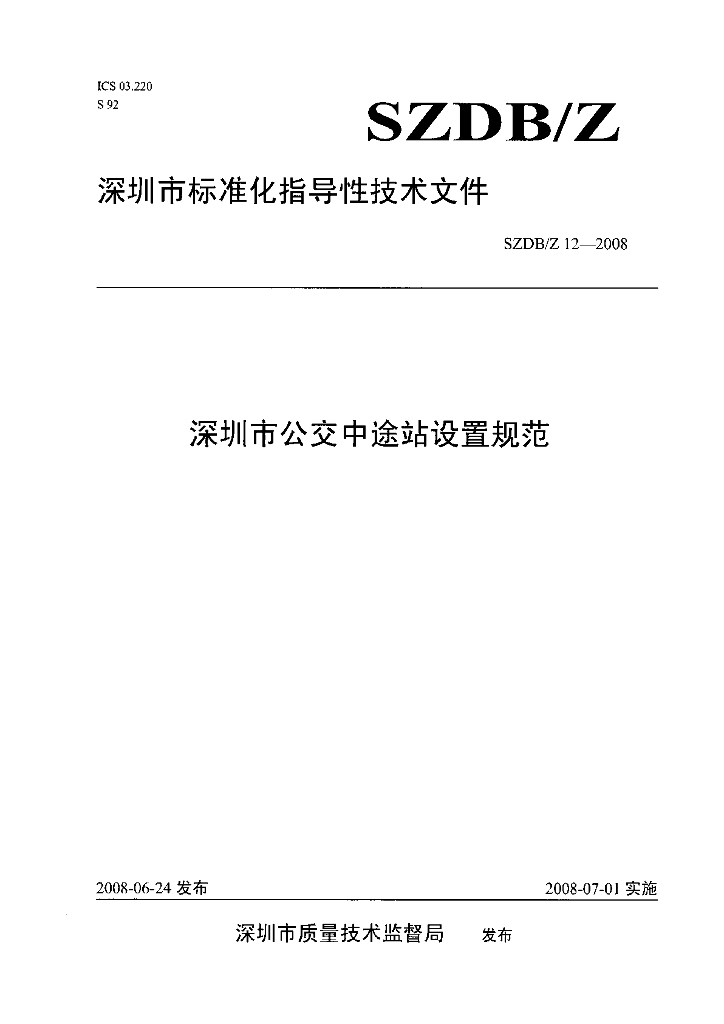 SZDB/Z 12-2008 深圳市公交中途站设置规范