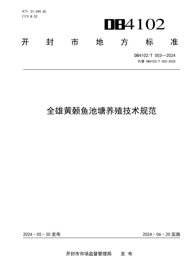 DB4102/T 003-2024 全雄黄颡鱼池塘养殖技术规范