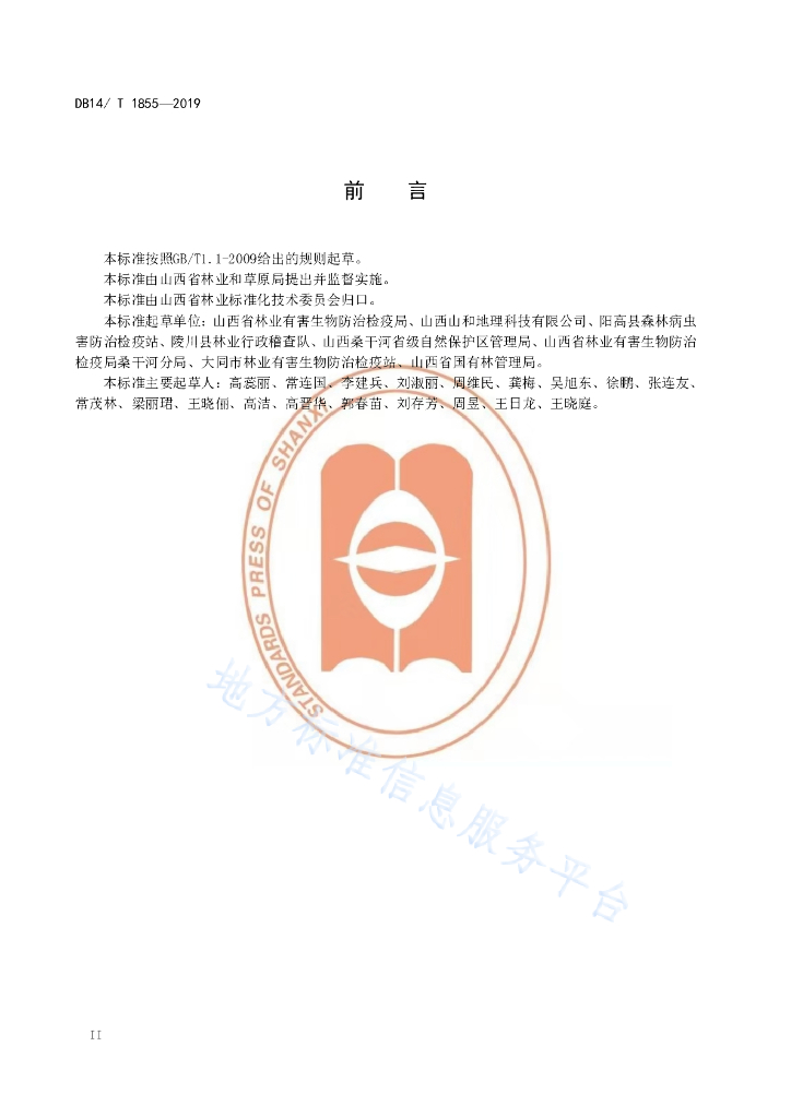 山西省林业有害生物防治检疫局、山西山和地理科技有限公司、阳高县森林病虫害防治检疫站、陵川县林业行政稽查队、山西桑干河省级自然保护区管理局、山西省林业有害生物防治检疫局桑干河分局、大同市林业有害生物防治检疫站、山西省国有林管理局。