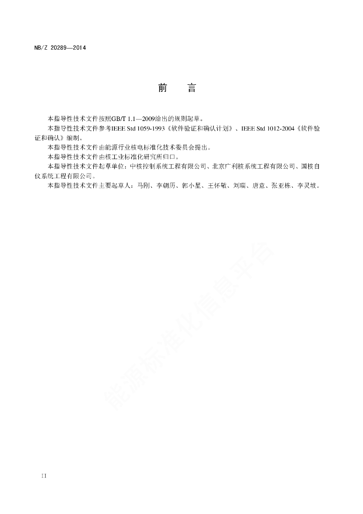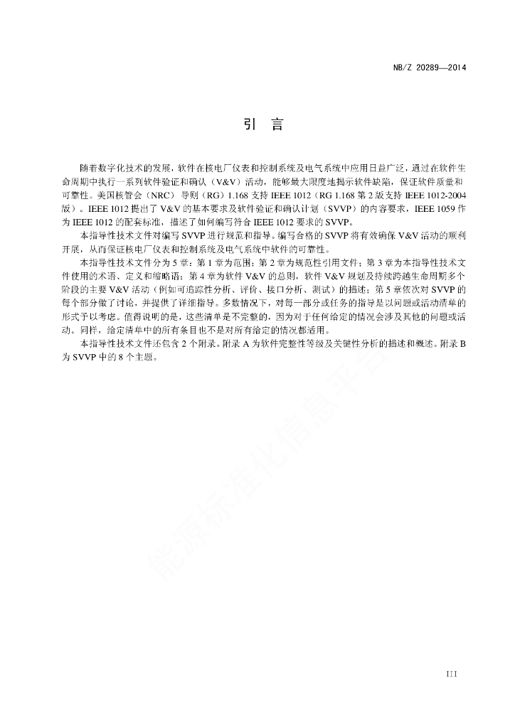NB/T 20289-2014 核电厂软件验证和确认计划编制指南