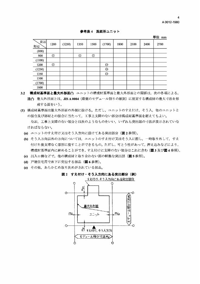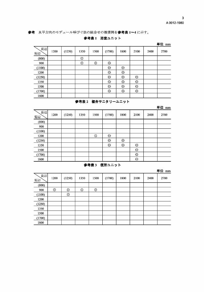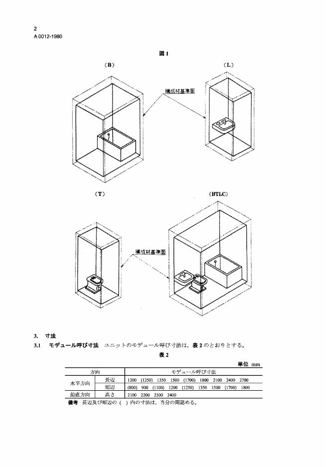 JIS A0012-1980 住宅卫生设备的模数组合尺寸