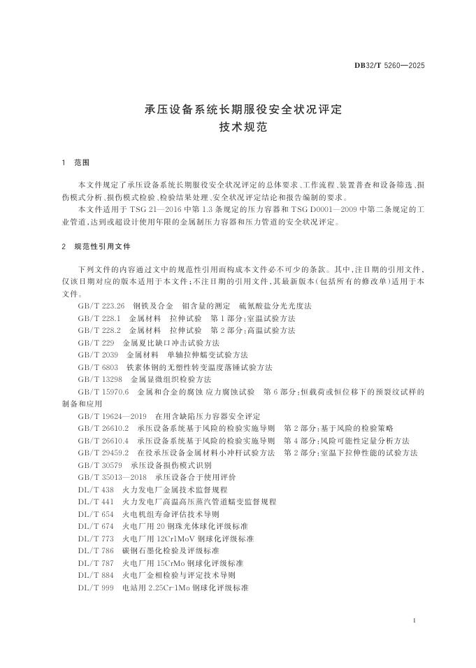 DB32/T 5260-2025 承压设备系统长期服役安全状况评定技术规范