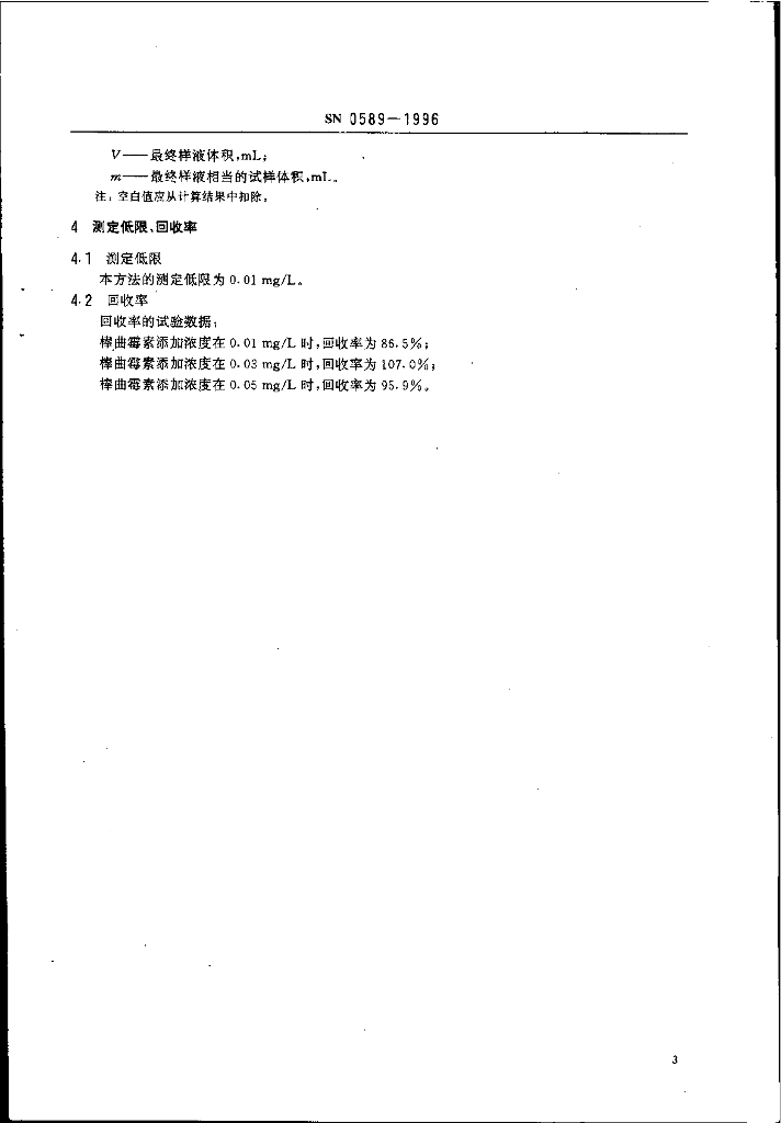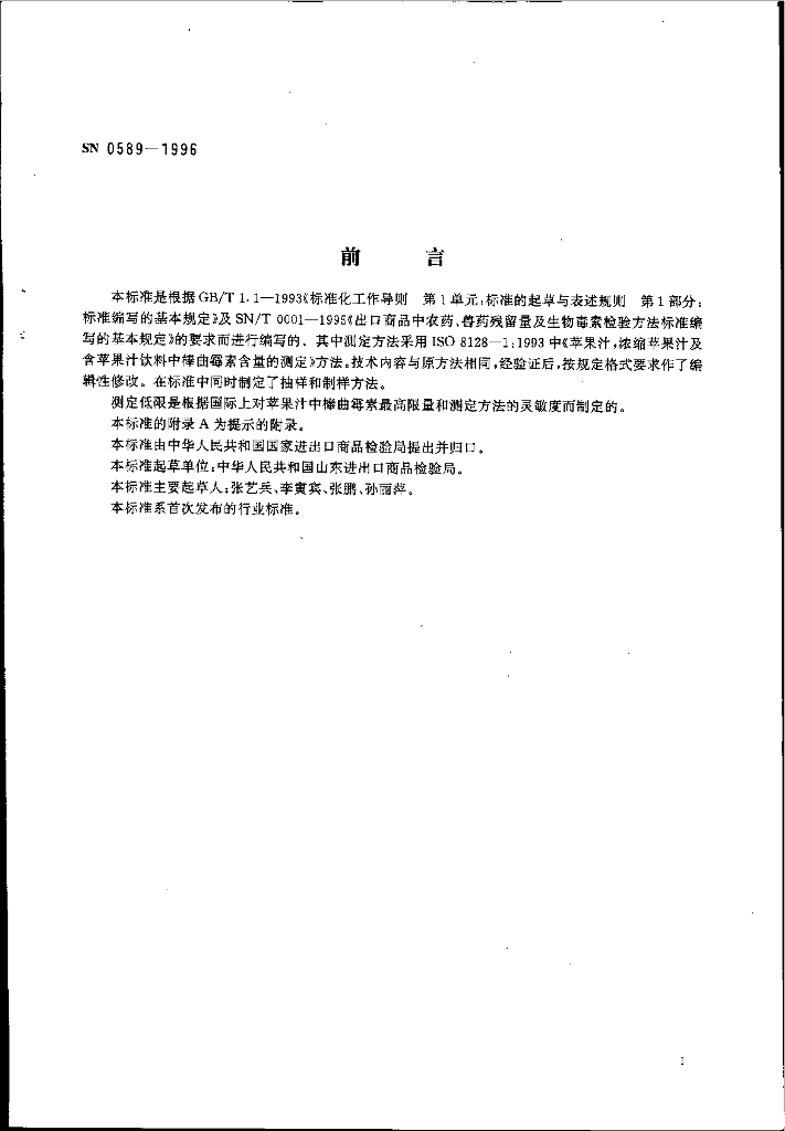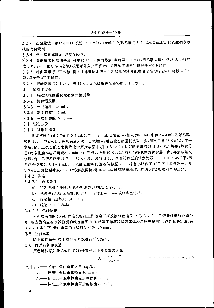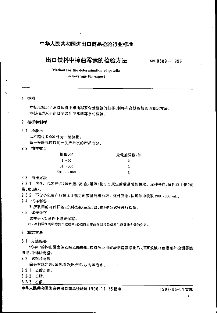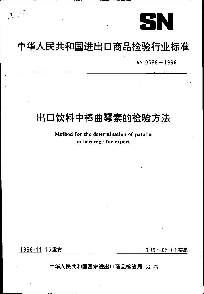 SN 0589-1996 出口饮料中棒曲霉素的检验方法