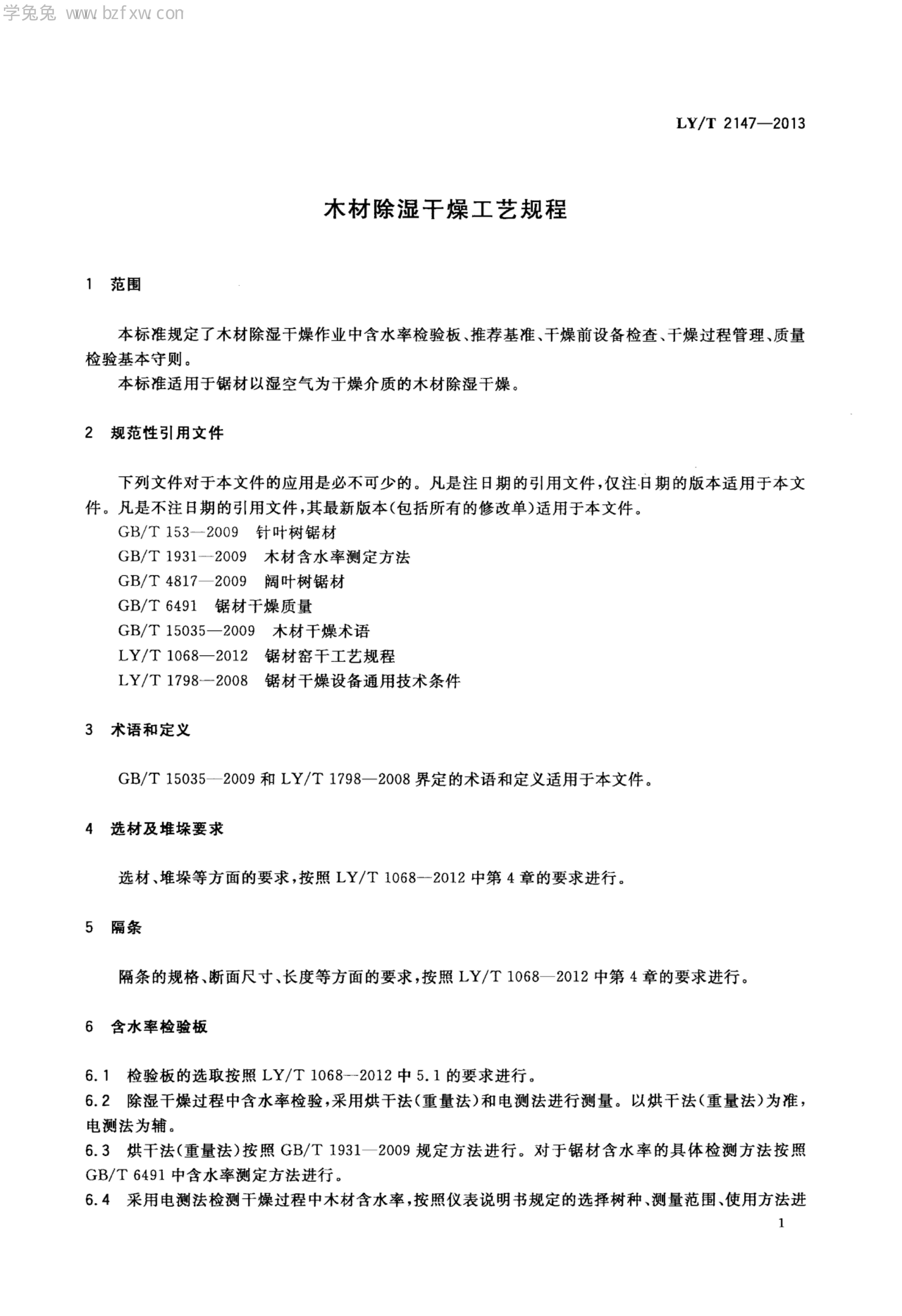LY/T 2147-2013 木材除湿干燥工艺规程