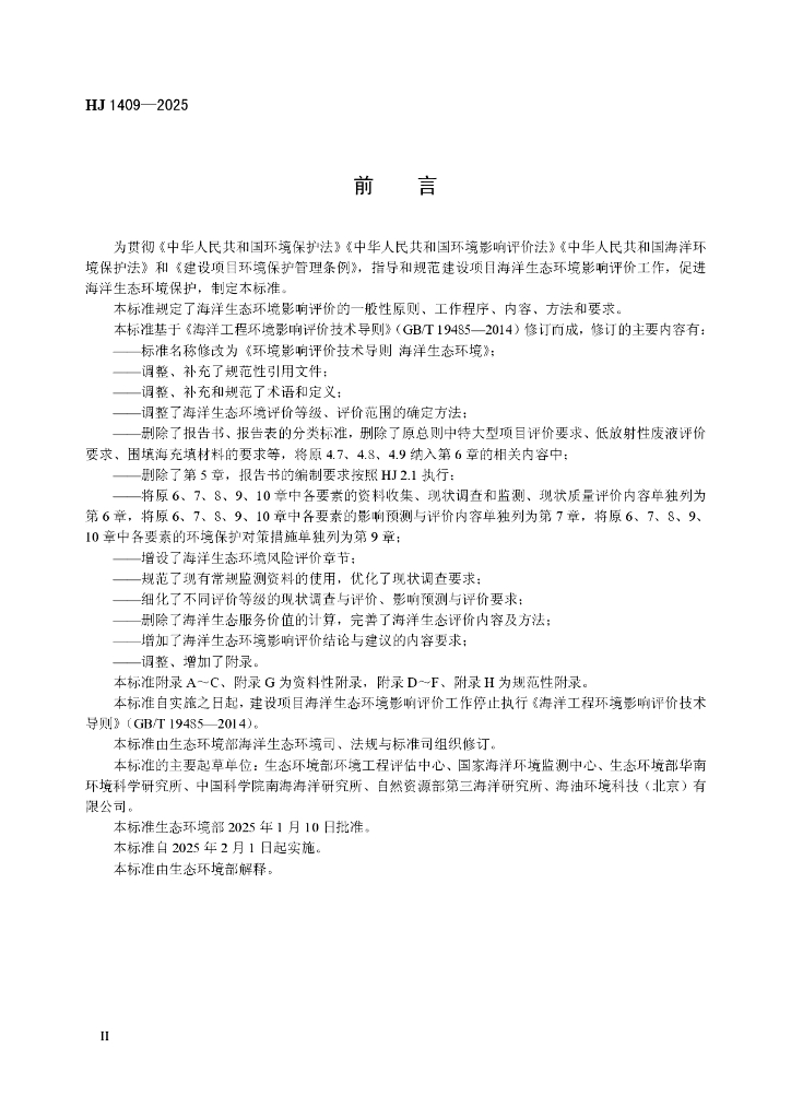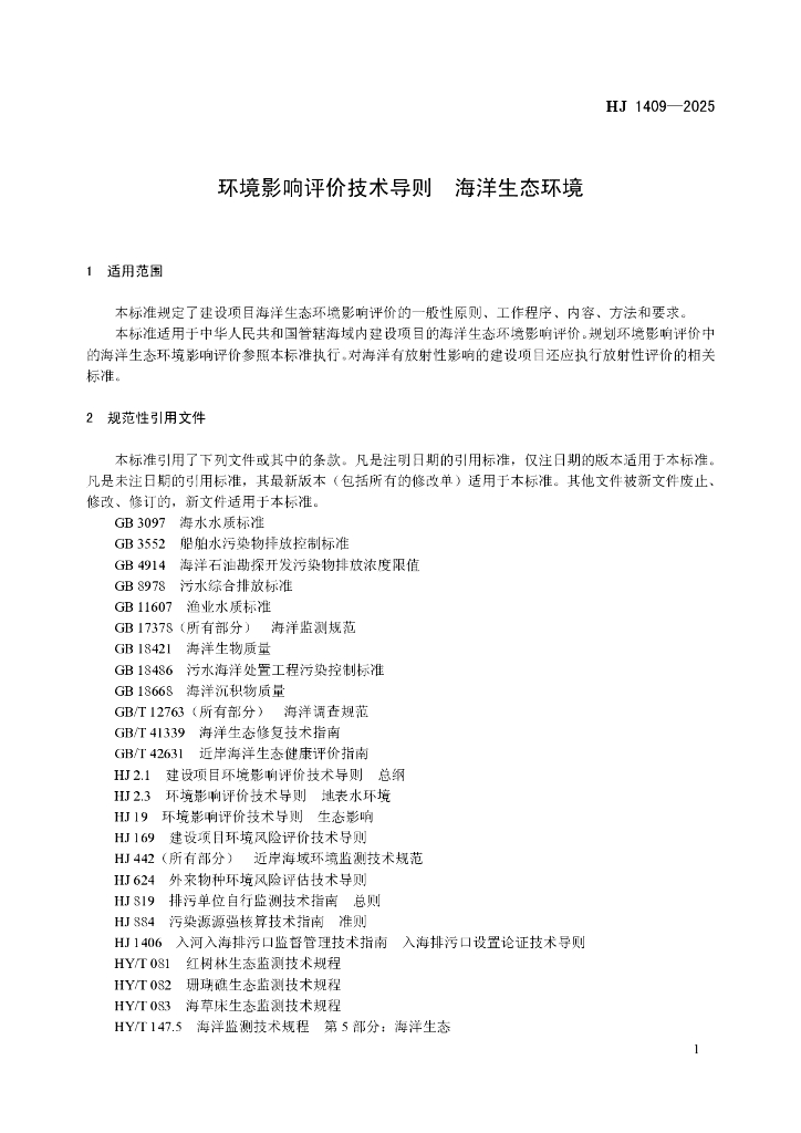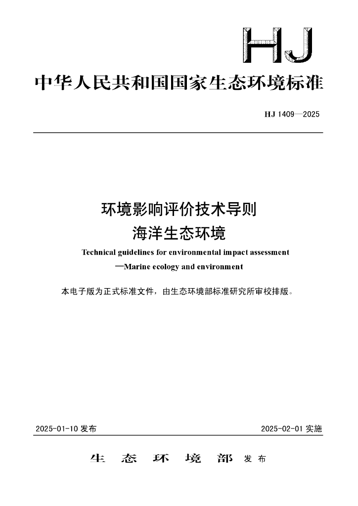 HJ 1409-2025 环境影响评价技术导则 海洋生态环境