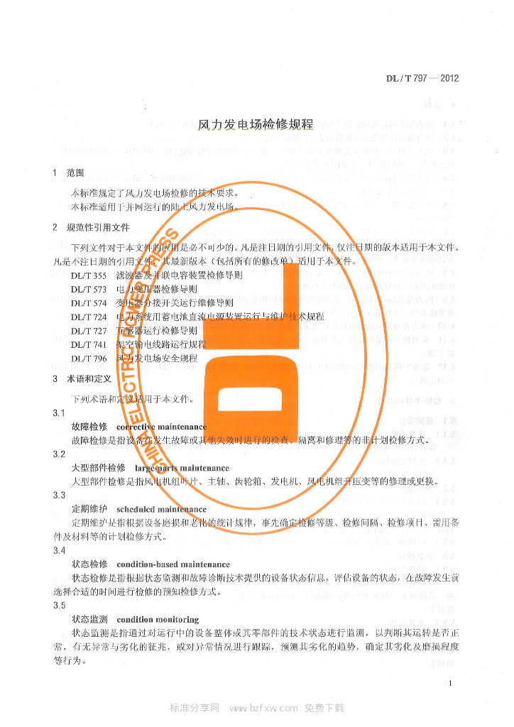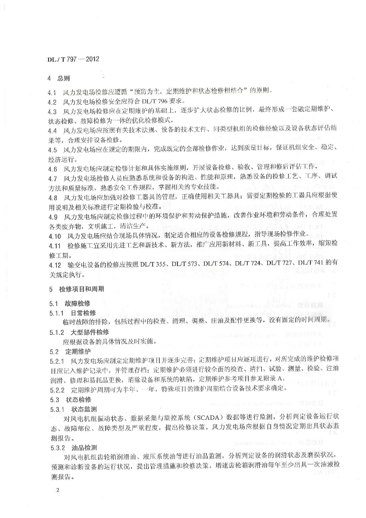 DL/T 797-2012 风力发电场检修规程