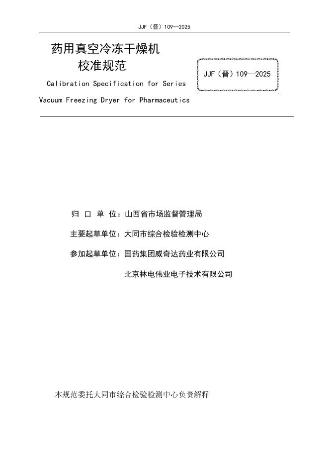 JJF(晋)109-2025 药用真空冷冻干燥机校准规范