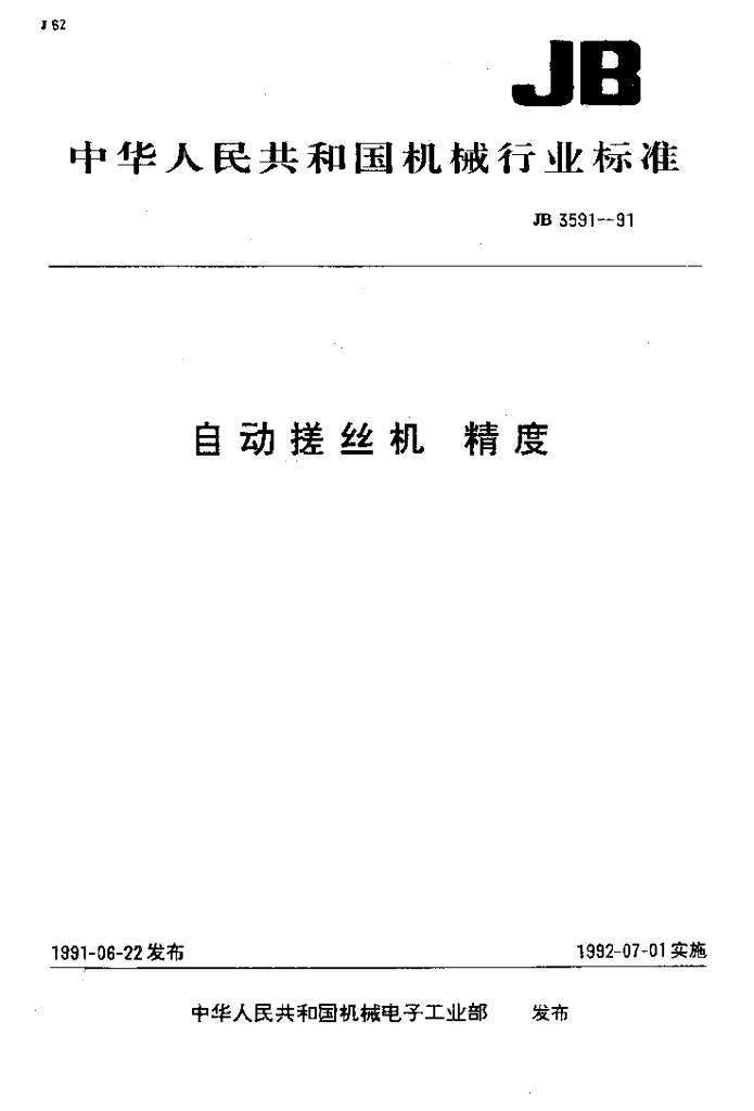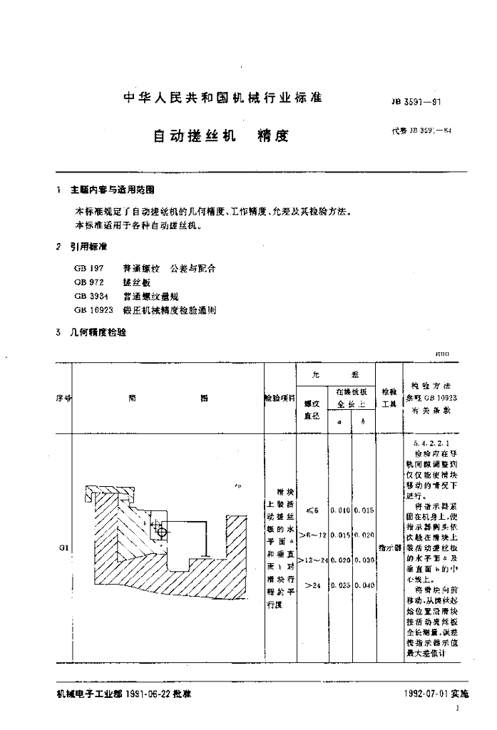 JB 3591-1991 自动搓丝机 精度