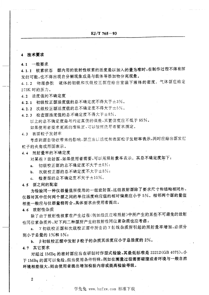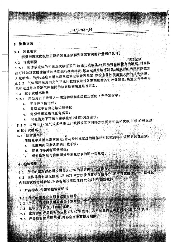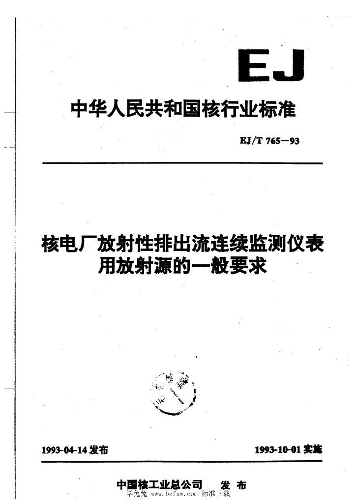 EJ/T 765-1993 核电厂放射性排出流连续监测仪表用放射源的一般要求