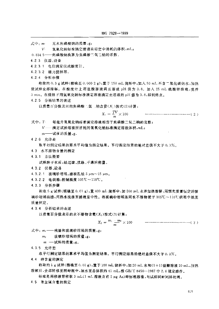 HG 2928-1999 食品添加剂 焦磷酸二氢二钠