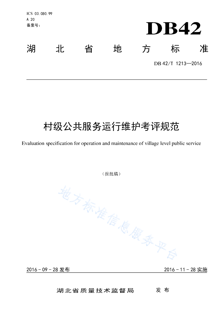 DB42/T 1213-2016 村级公共服务运行维护考评规范