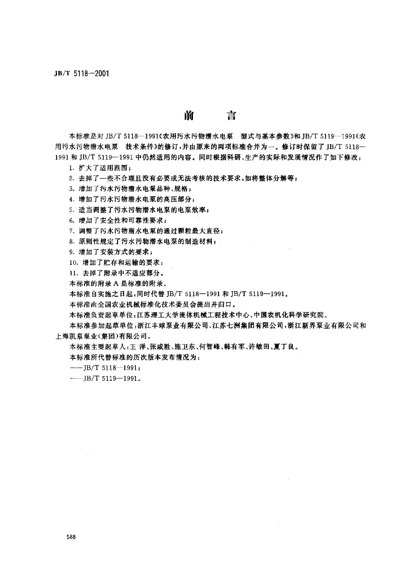 JB 5119-1991 农用污水污物潜水电泵技术条件