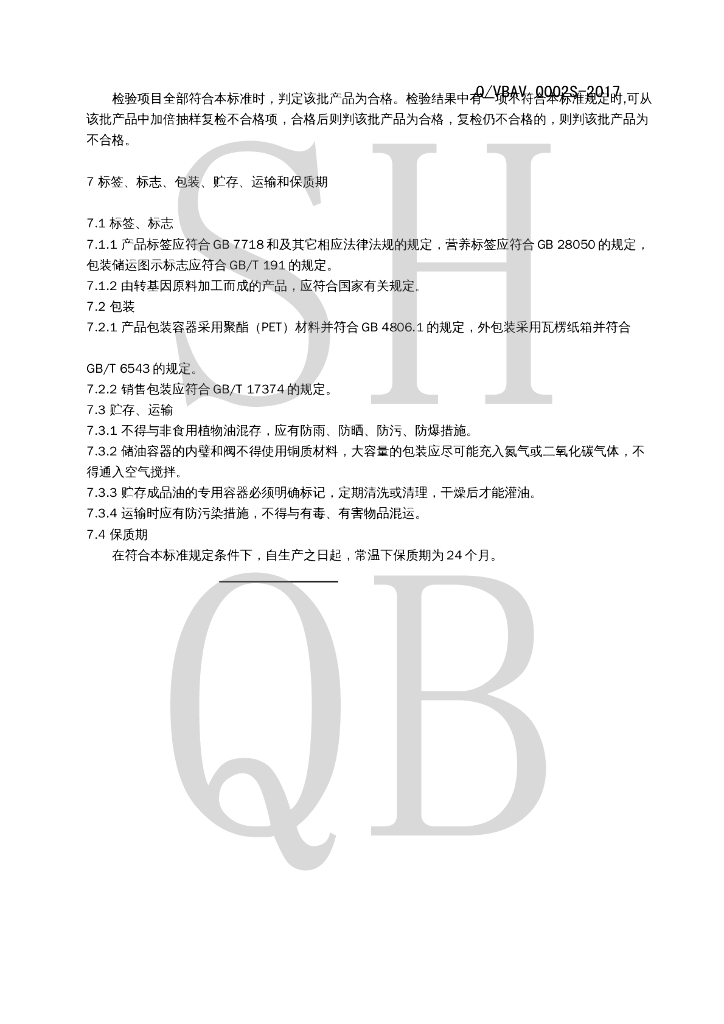 Q/VBAV 0002S-2017 稻米油