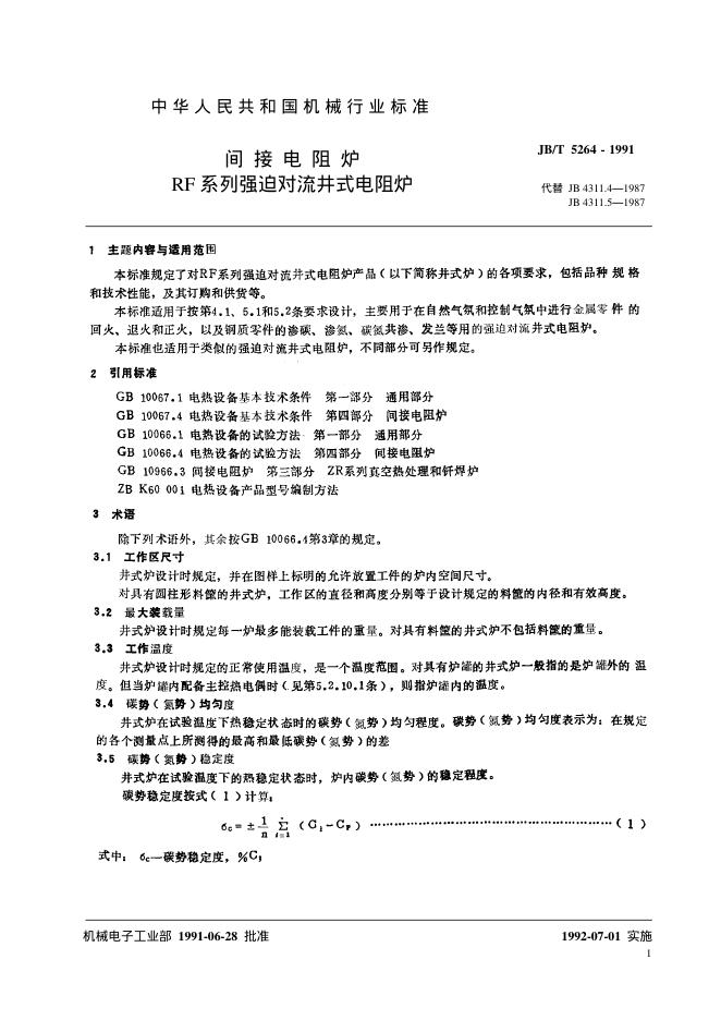 JB/T 5264-1991 间接电阻炉 RF系列强迫对流井式电阻炉