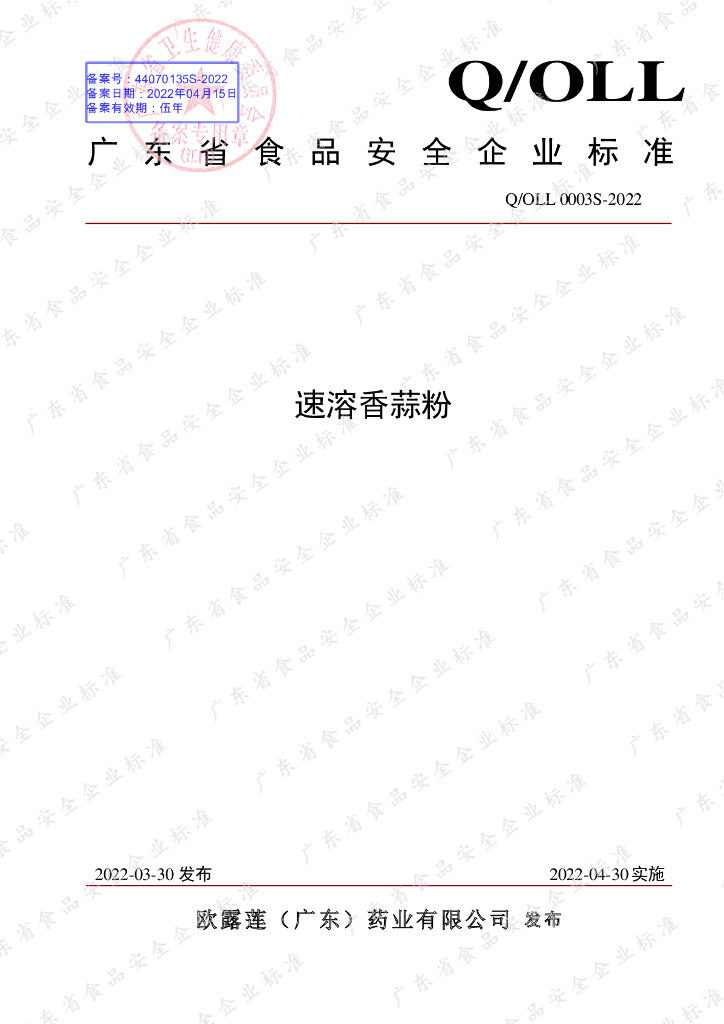 Q/OLL 0003S-2022 速溶香蒜粉
