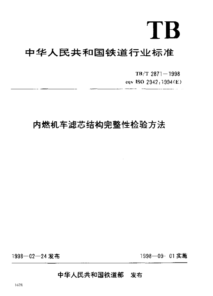 TB/T 2871-1998 内燃机车滤芯结构完整性检验方法