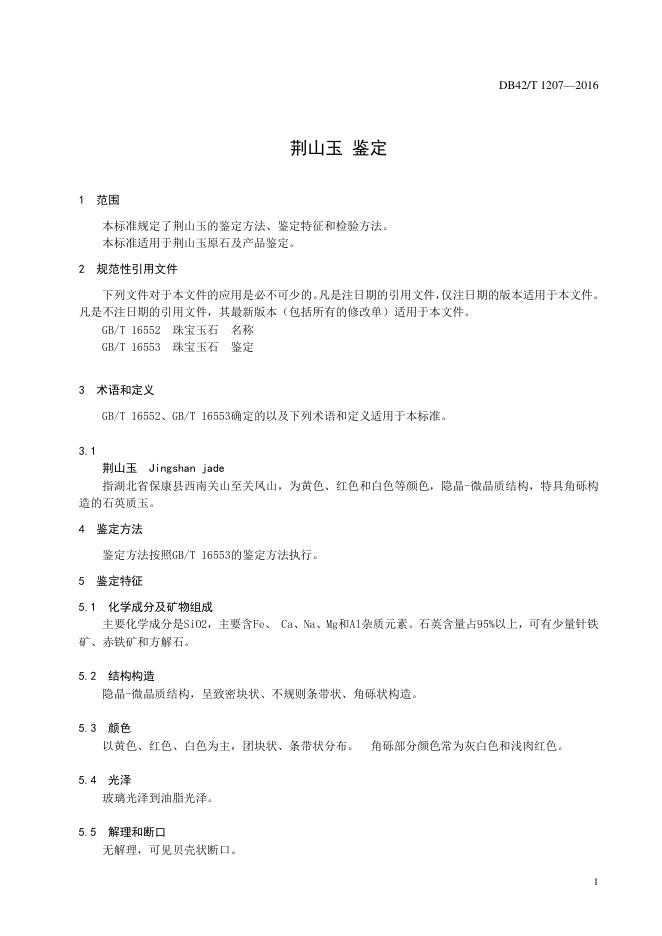 DB42/T 1207-2016 荆山玉 鉴定