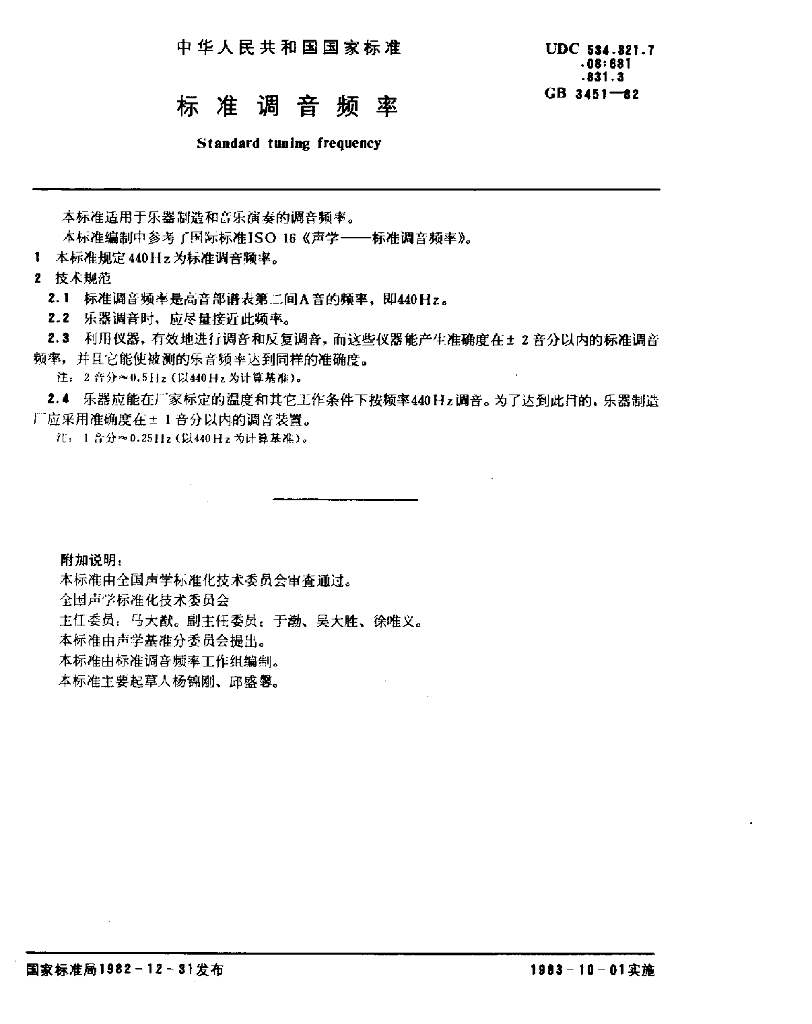GB/T 3451-1982 标准调音频率