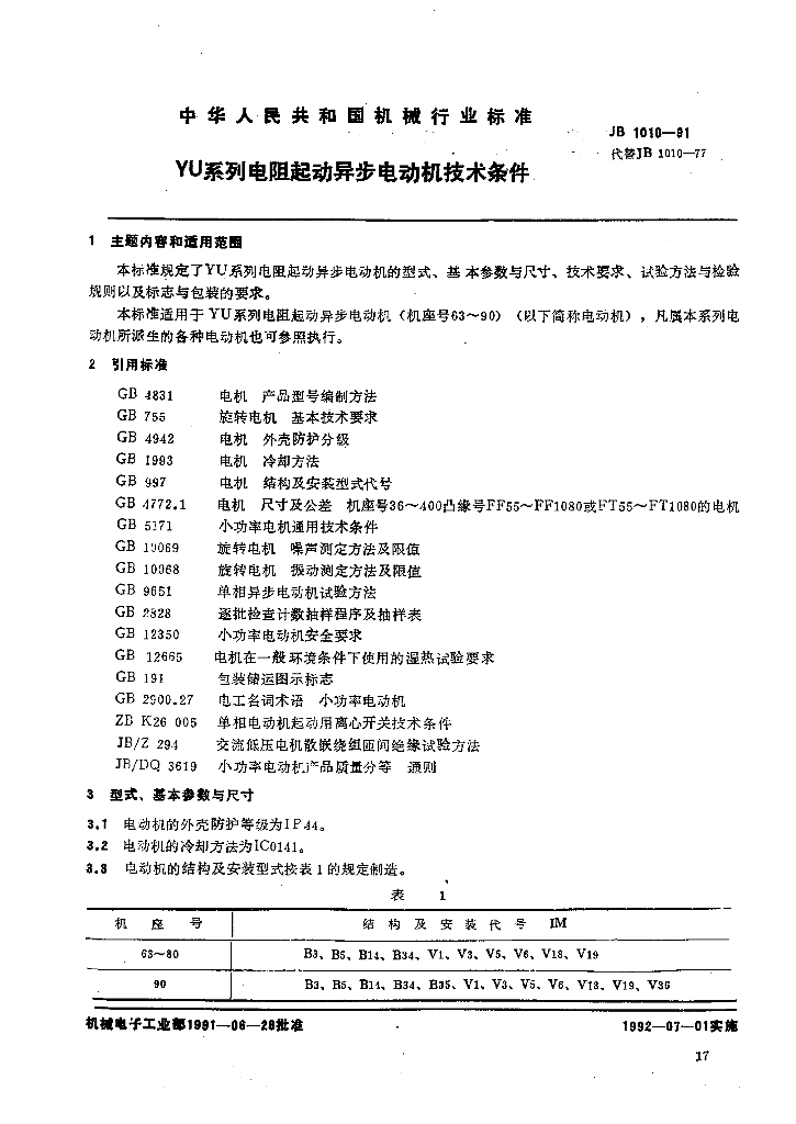 JB 1010-1991 YU系列电阻起动异步电动机技术条件