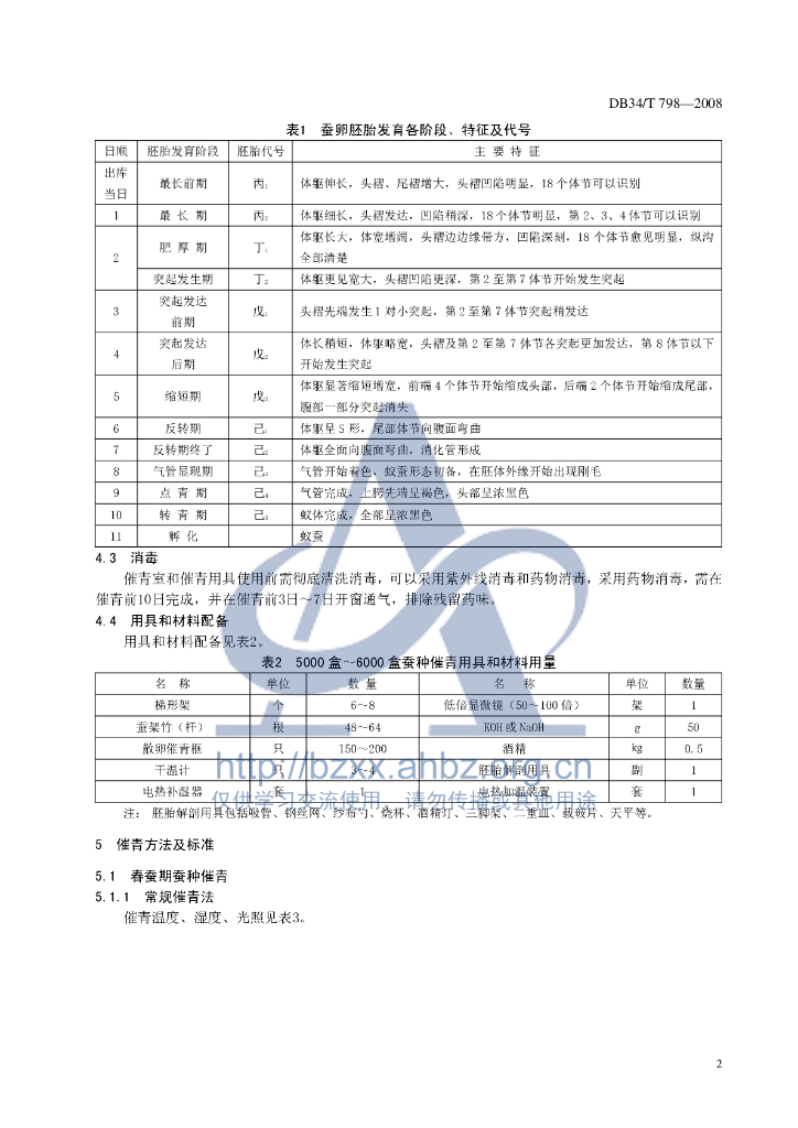 DB34/T 798-2008 桑蚕种催青技术操作规程