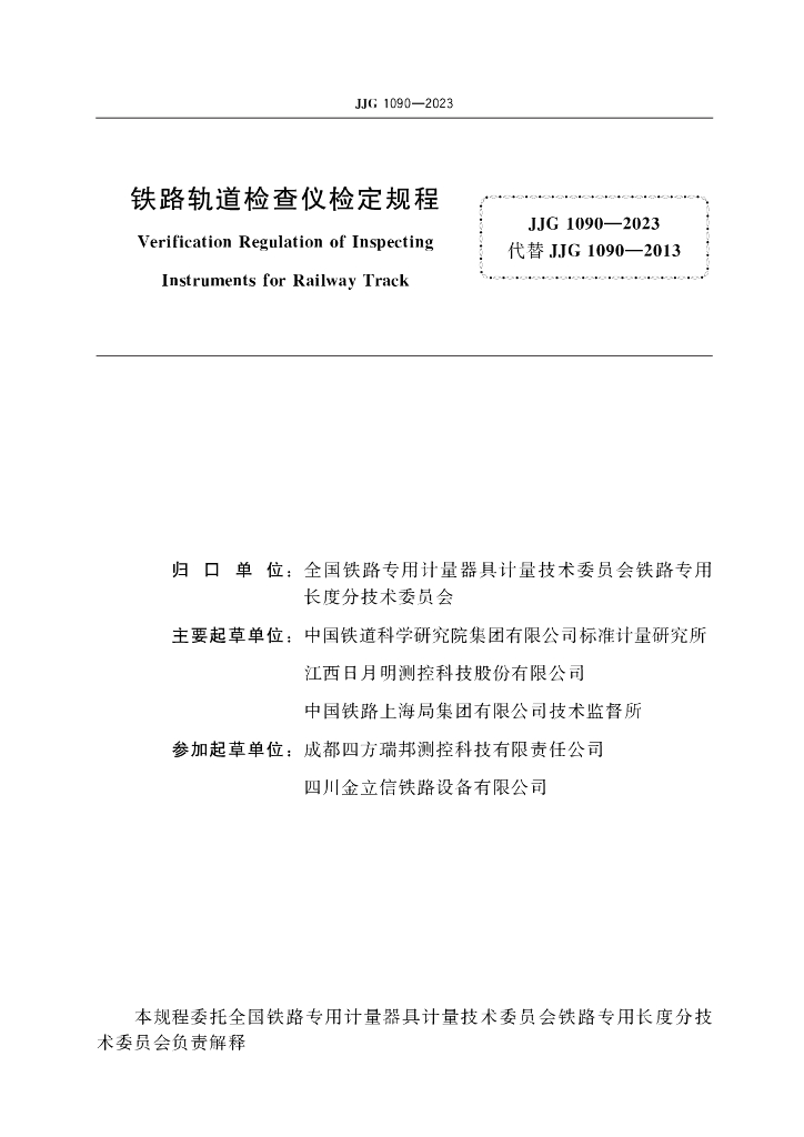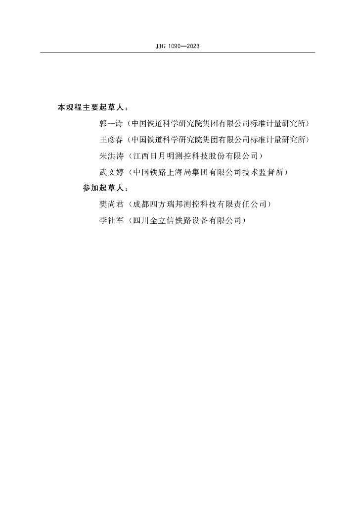 中国铁道科学研究院集团有限公司、标准计量研究所江西日月明测控科技股份有限公司、中国铁路上海局集团有限公司技术监督所、成都四方瑞邦测控科技有限责任公司、四川金立信铁路设备有限公司