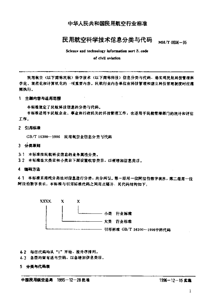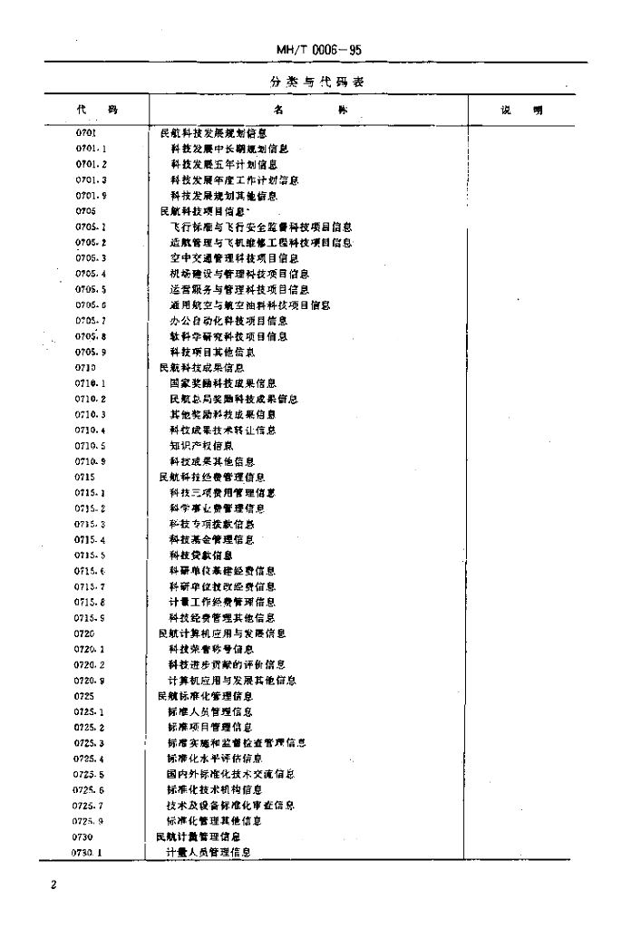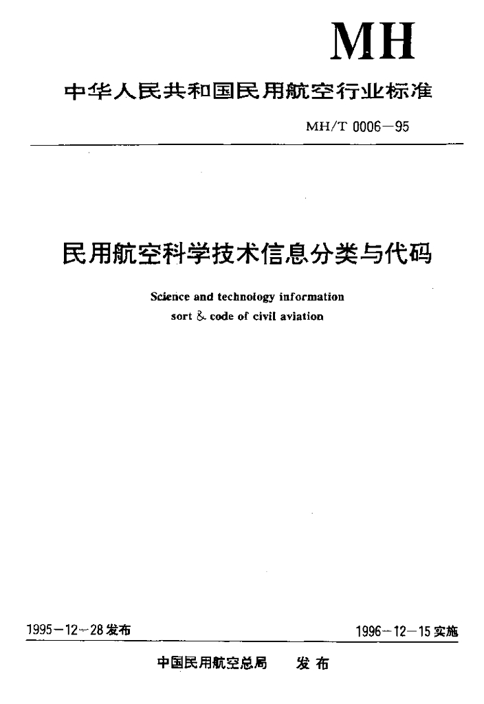 MH/T 0006-1995 民用航空科学技术信息分类与代码