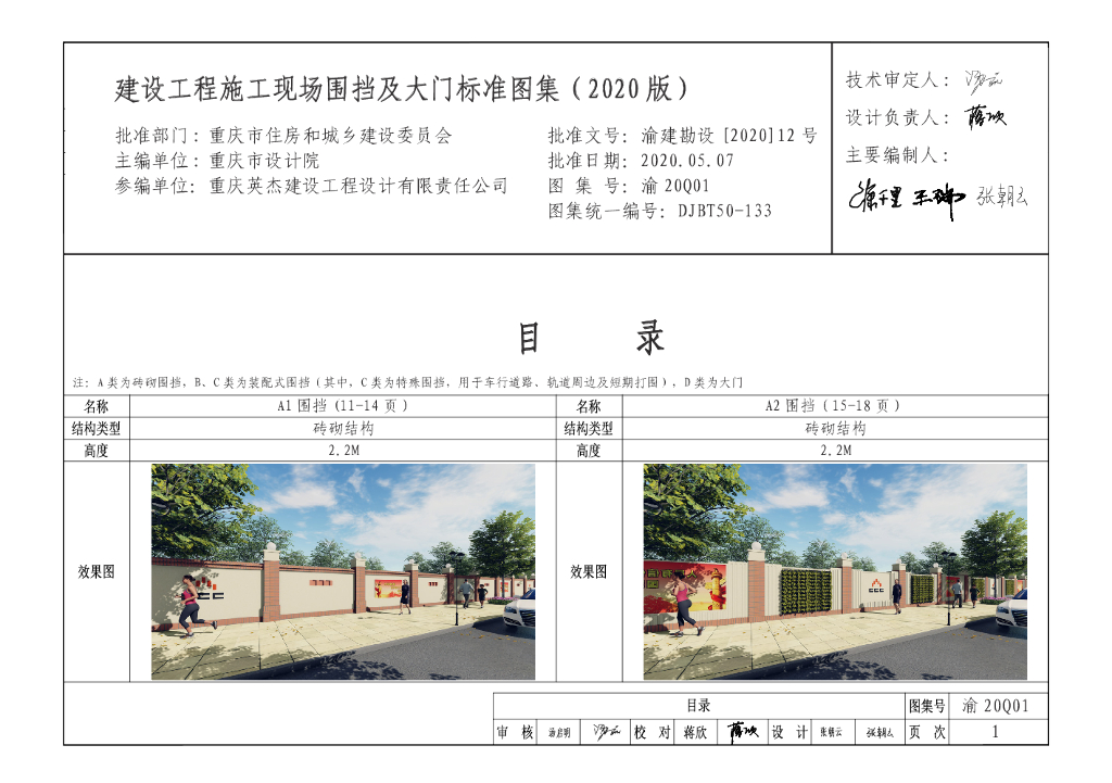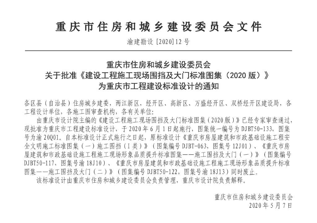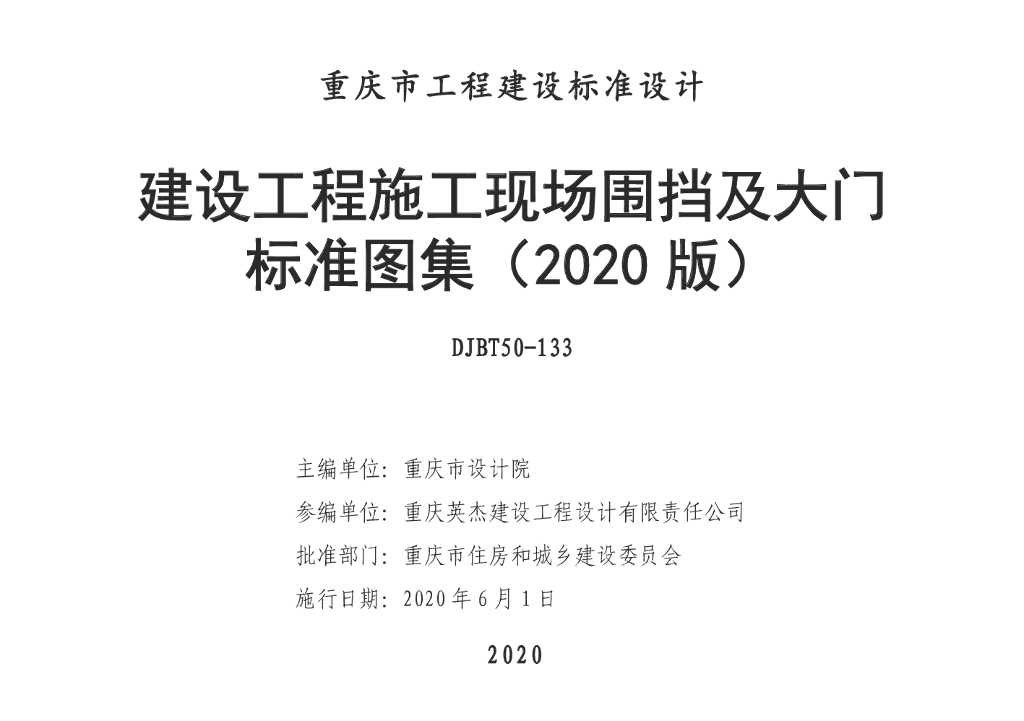 渝20Q01 重庆市建设工程施工现场围挡及大门标准图集(2020版)(DJBT50-133)