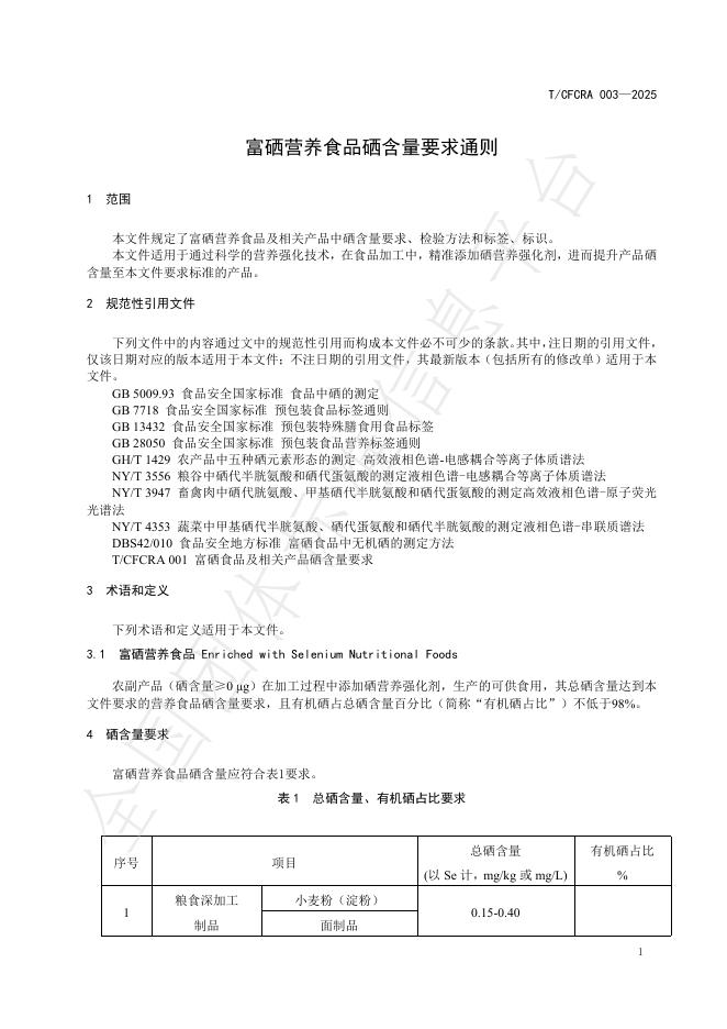 T/CFCRA 003-2025 富硒营养食品硒含量要求通则