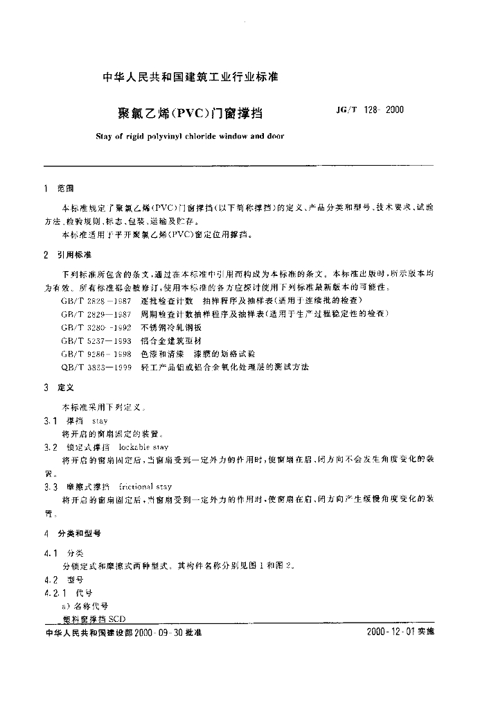 JG/T 128-2000 聚氯乙烯(PVC)门窗挡