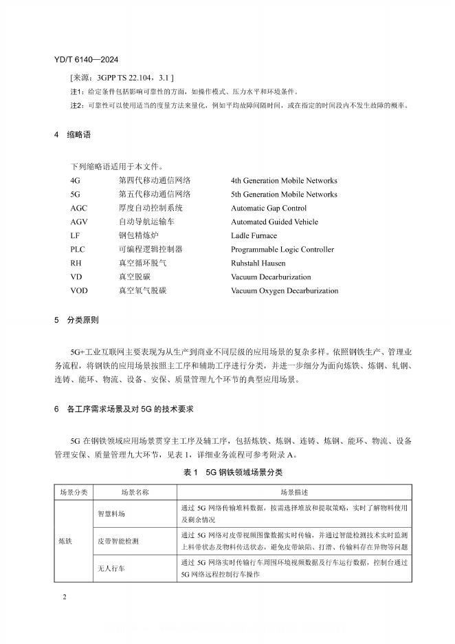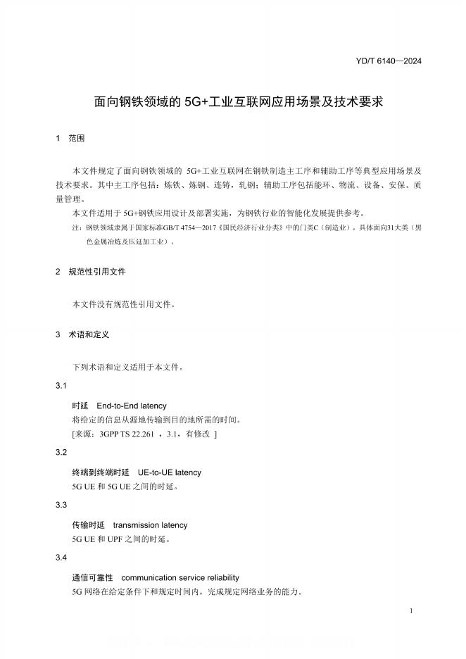 YD/T 6140-2024 面向钢铁领域的5G+工业互联网应用场景及技术要求