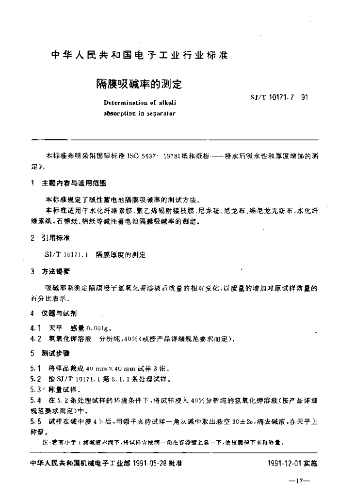 SJ/T 10171.7-1991 隔膜吸碱率的测定