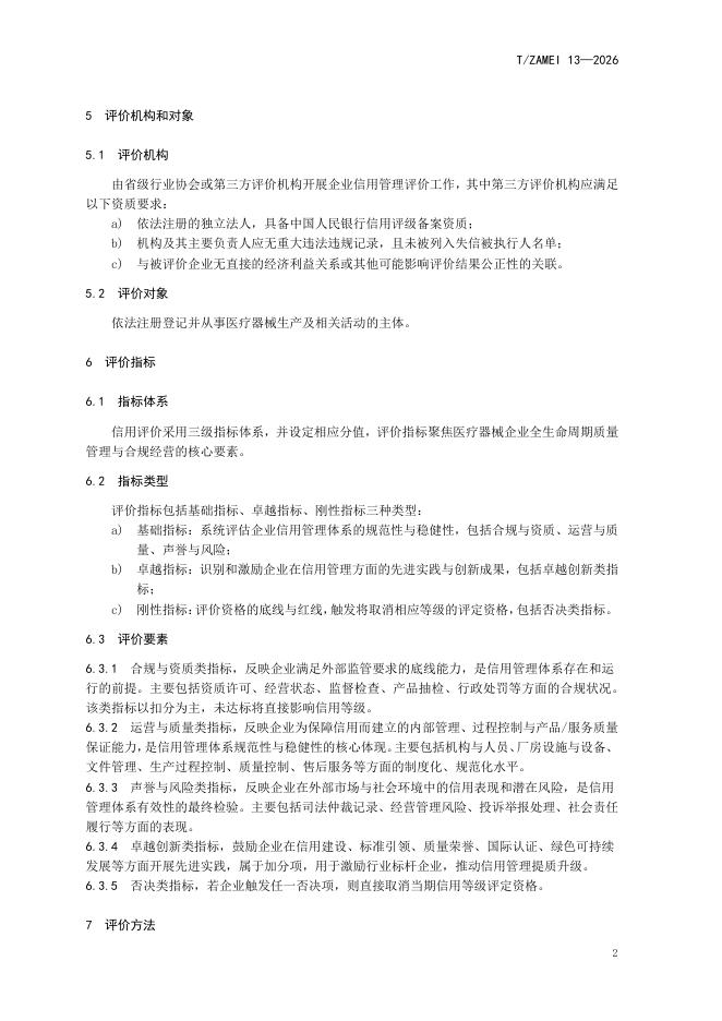 T/ZAMEI 13-2026 医疗器械企业信用评价规范