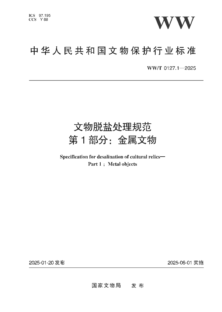WW/T 0127.1-2025 文物脱盐处理规范 第1部分:金属文物