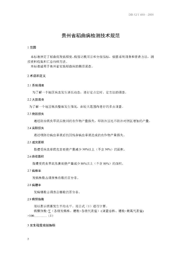 DB52/T 480-2005 贵州省稻曲病检测技术规范