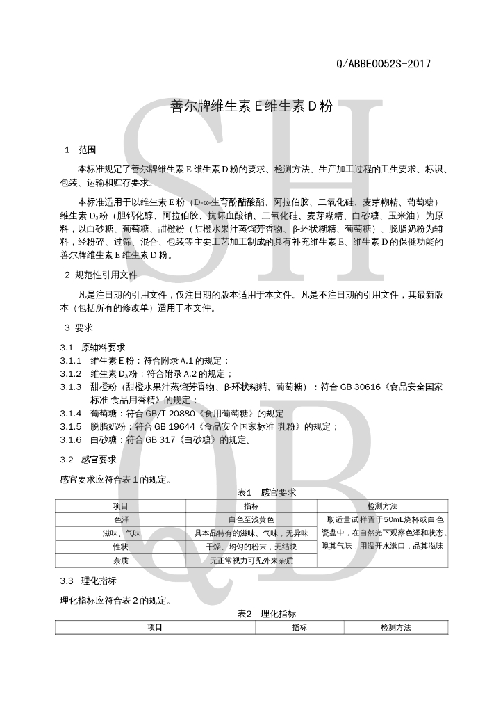 Q/ABBE 0052S-2017 善尔牌维生素E维生素D粉