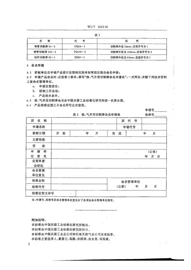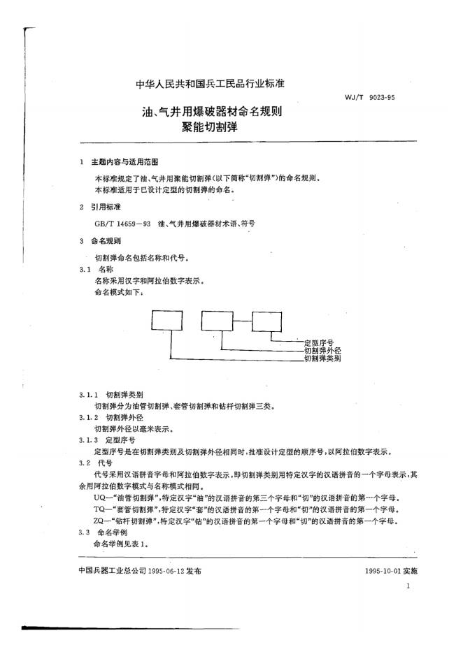 WJ/T 9023-1995 油、气井用爆破器材命名规则聚能切割弹