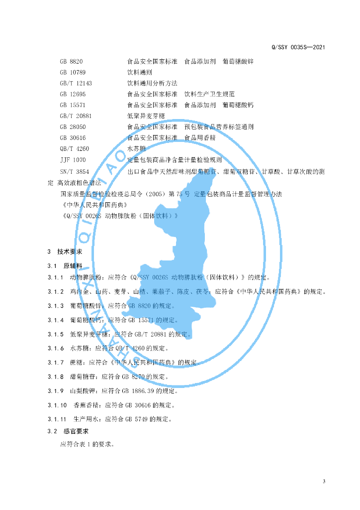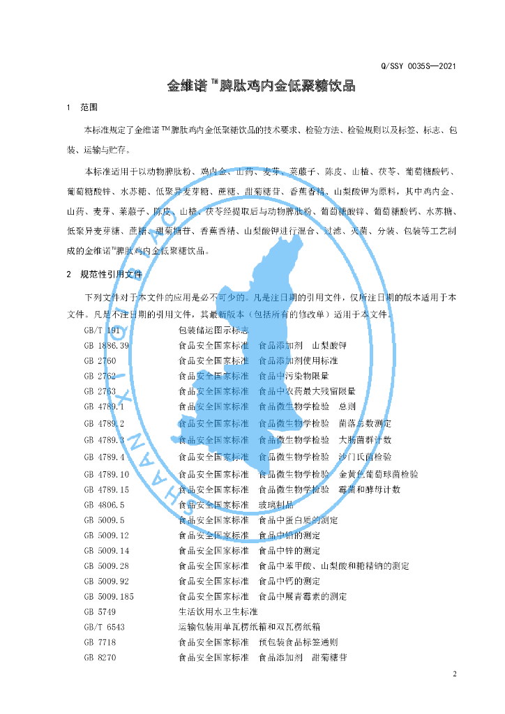 Q/SSY 0035S-2021 金维诺TM脾肽鸡内金低聚糖饮品