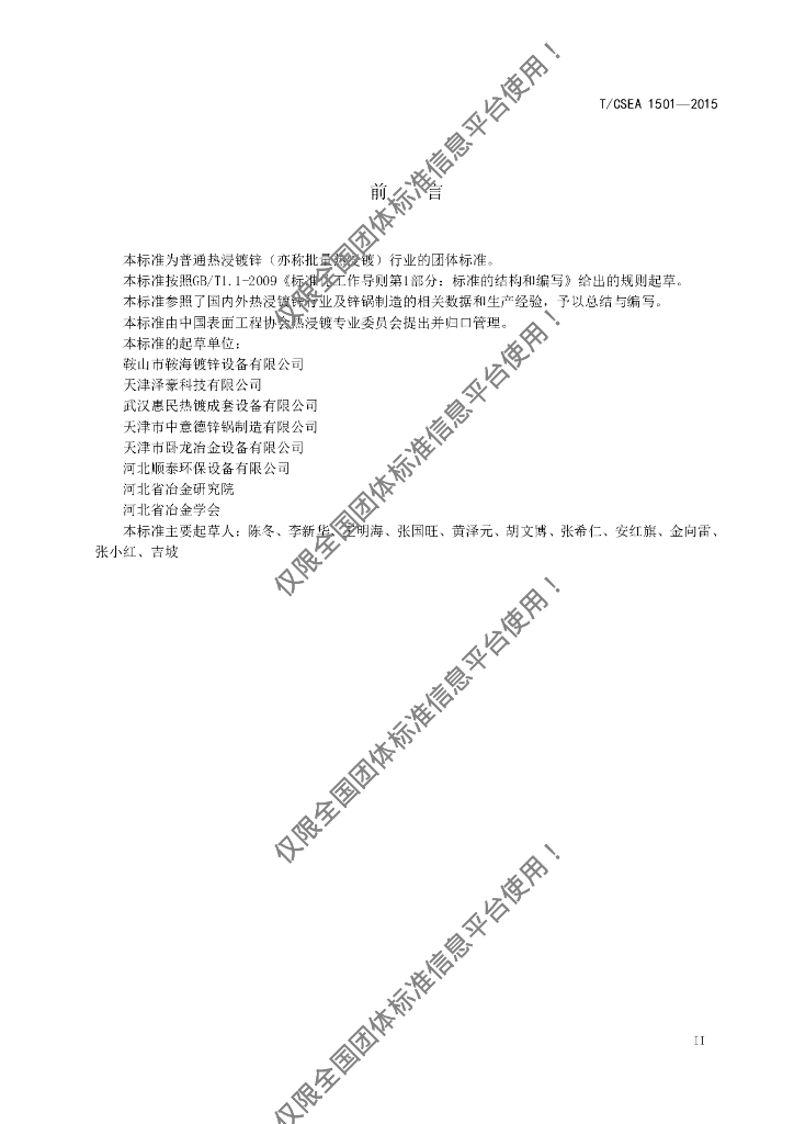 鞍山市鞍海镀锌设备有限公司、天津泽豪科技有限公司、武汉惠民热镀成套设备有限公司、天津市中意德锌锅制造有限公司、天津市卧龙冶金设备有限公司、河北顺泰环保设备有限公司、河北省冶金研究院、河北省冶金学会