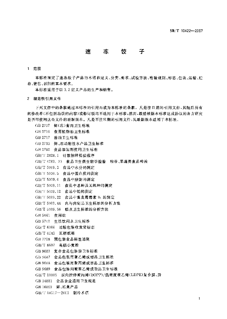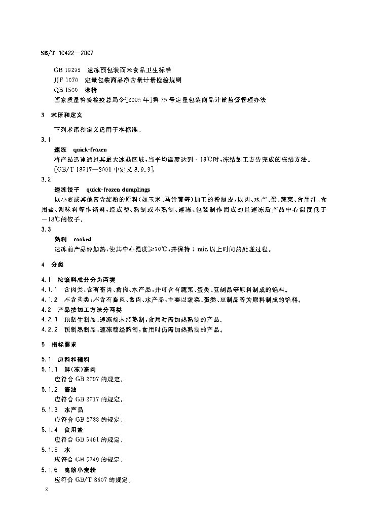 SB/T 10422-2007 速冻饺子