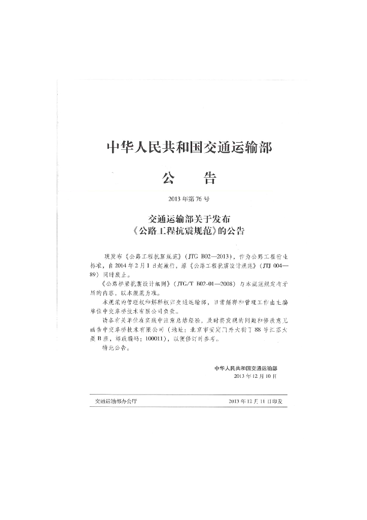 中交路桥技术有限公司、同济大学、中国地震局工程力学研究所、交通运输部公路科学研究院、长安大学、中交公路规划设计院有限公司、哈尔滨工业大学、云南省交通规划设计研究院