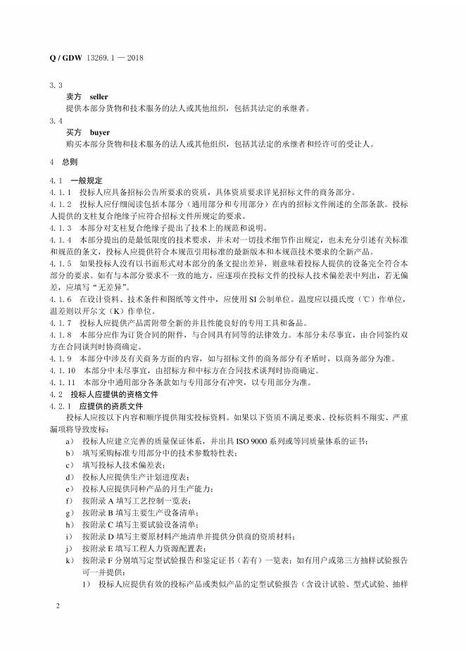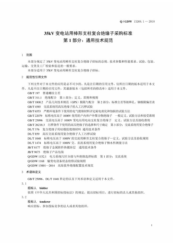 Q/GDW 13269.1-2018 35kV变电站用棒形支柱复合绝缘子采购标准 第1部分:通用技术规范