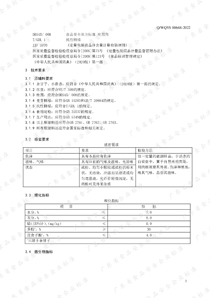 Q/WQYS 0066S-2022 食品加工用植物粉Ⅷ