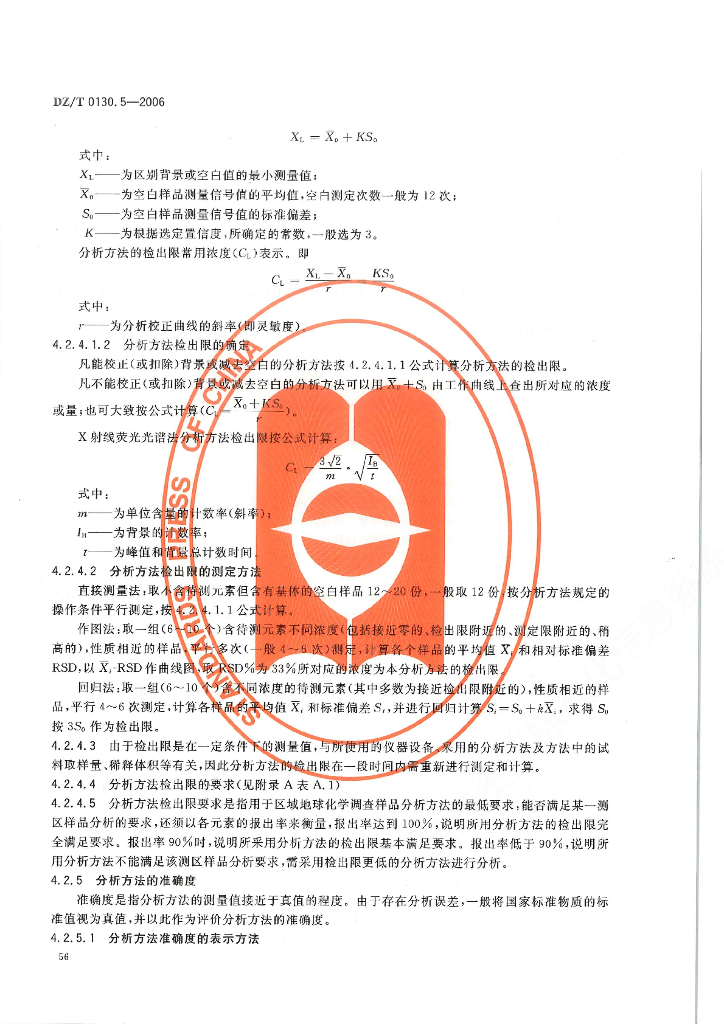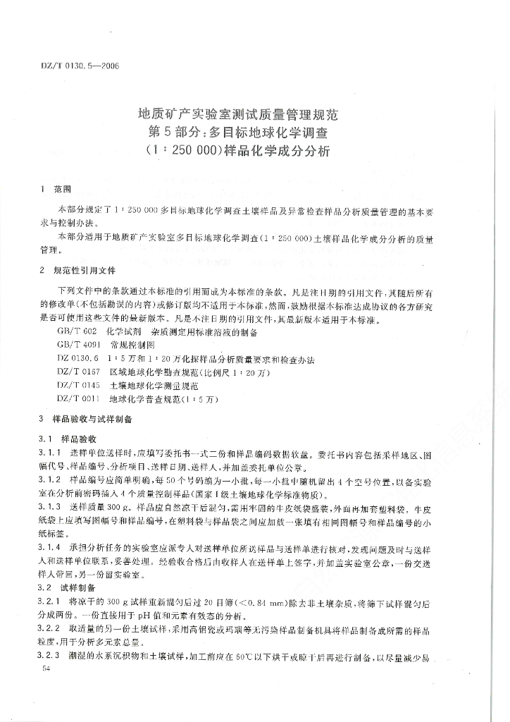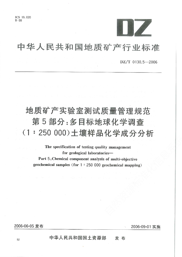 DZ/T 0130.5-2006 地质矿产实验室测试质量管理规范 第5部分:多目标地球化学调查(1 : 250000)土壤样品化学成分分析