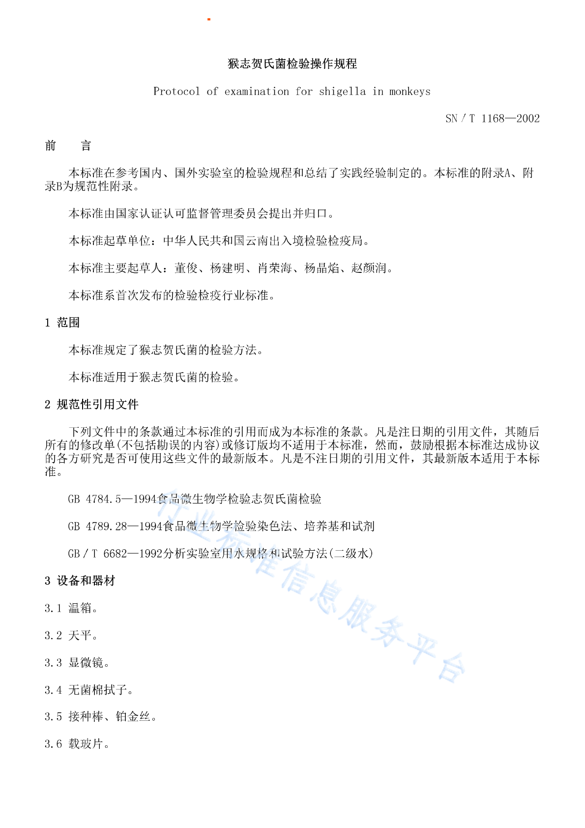SN/T 1168-2002 猴志贺氏菌检验操作规程