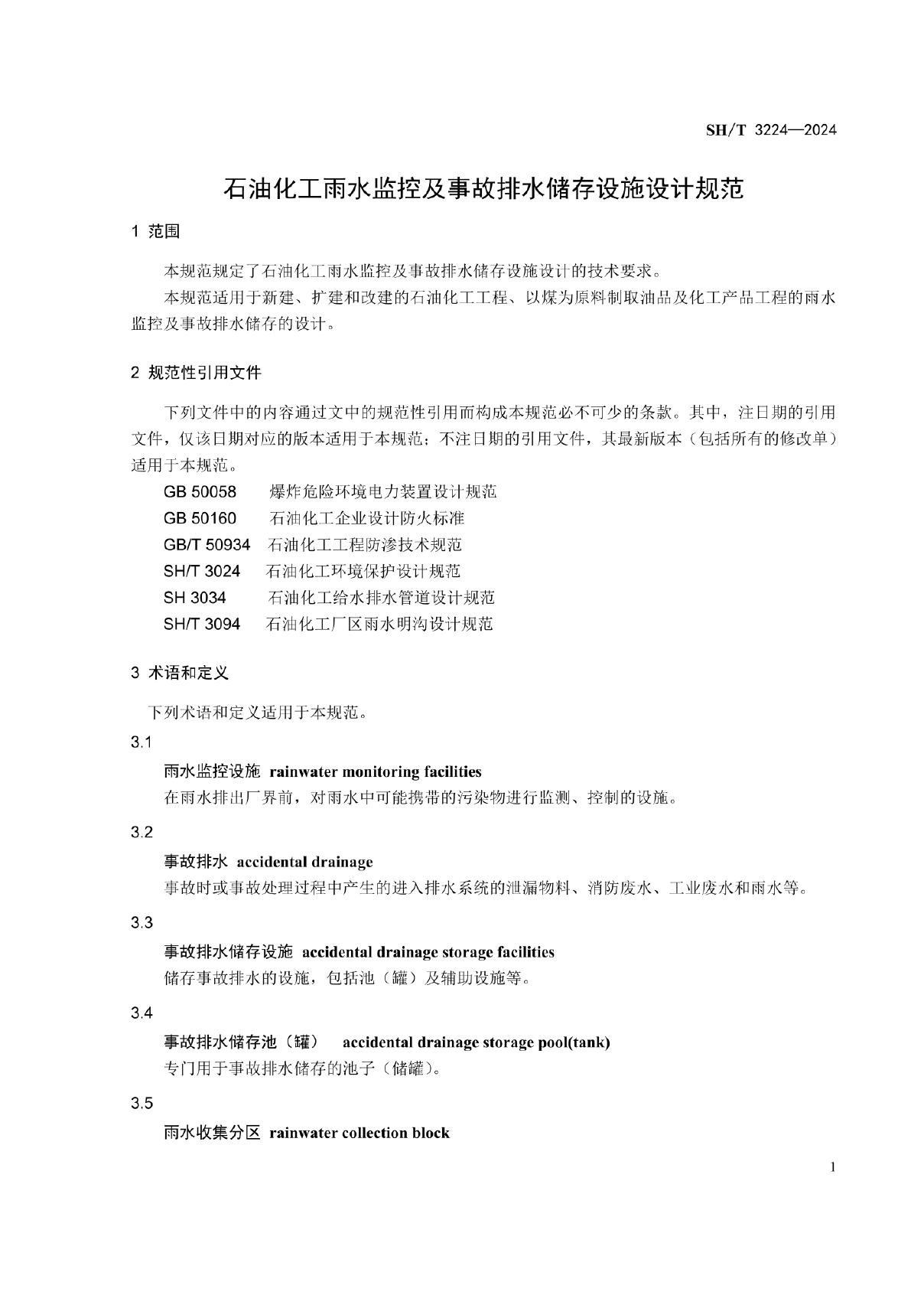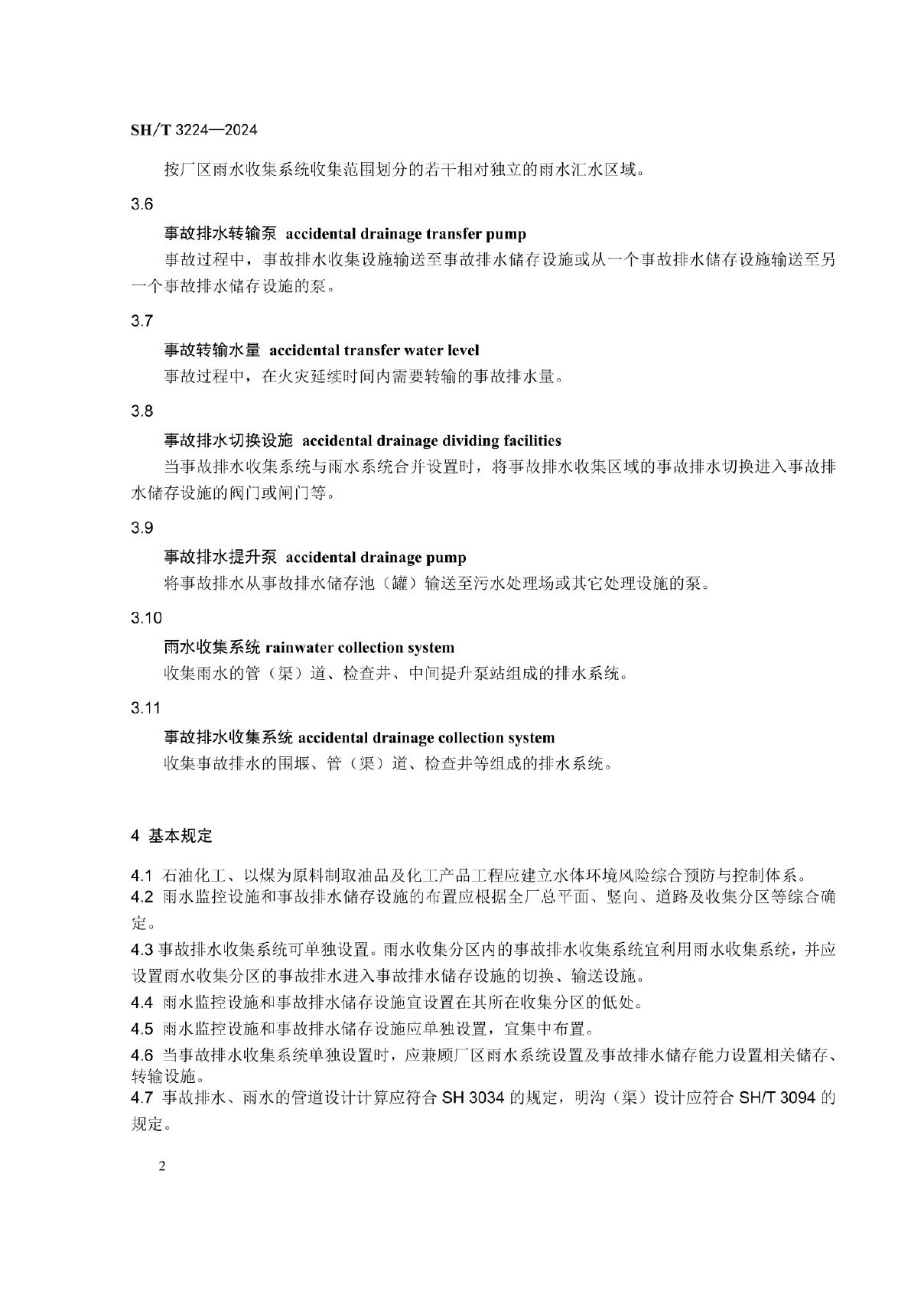 SH/T 3224-2024 石油化工雨水监控及事故排水储存设施设计规范