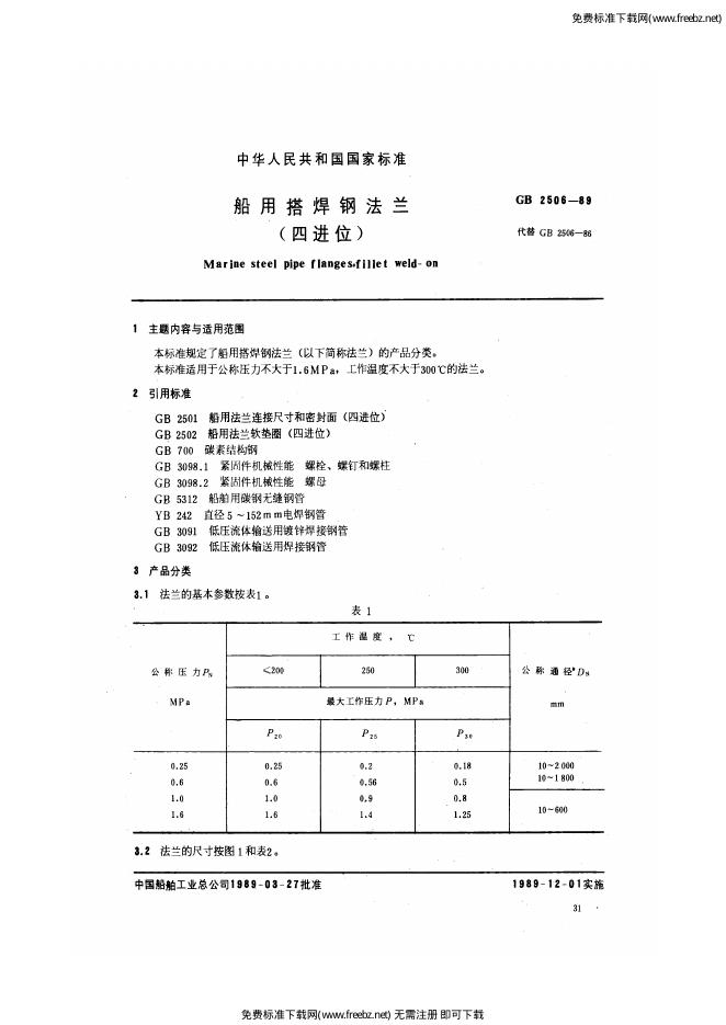 GB/T 2506-1989 船用搭焊钢法兰 四进位